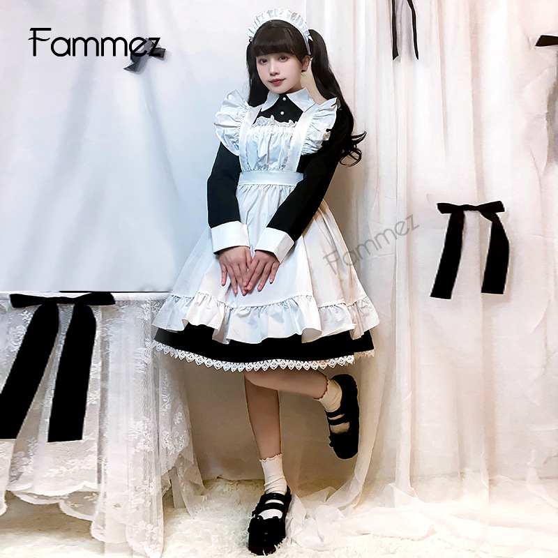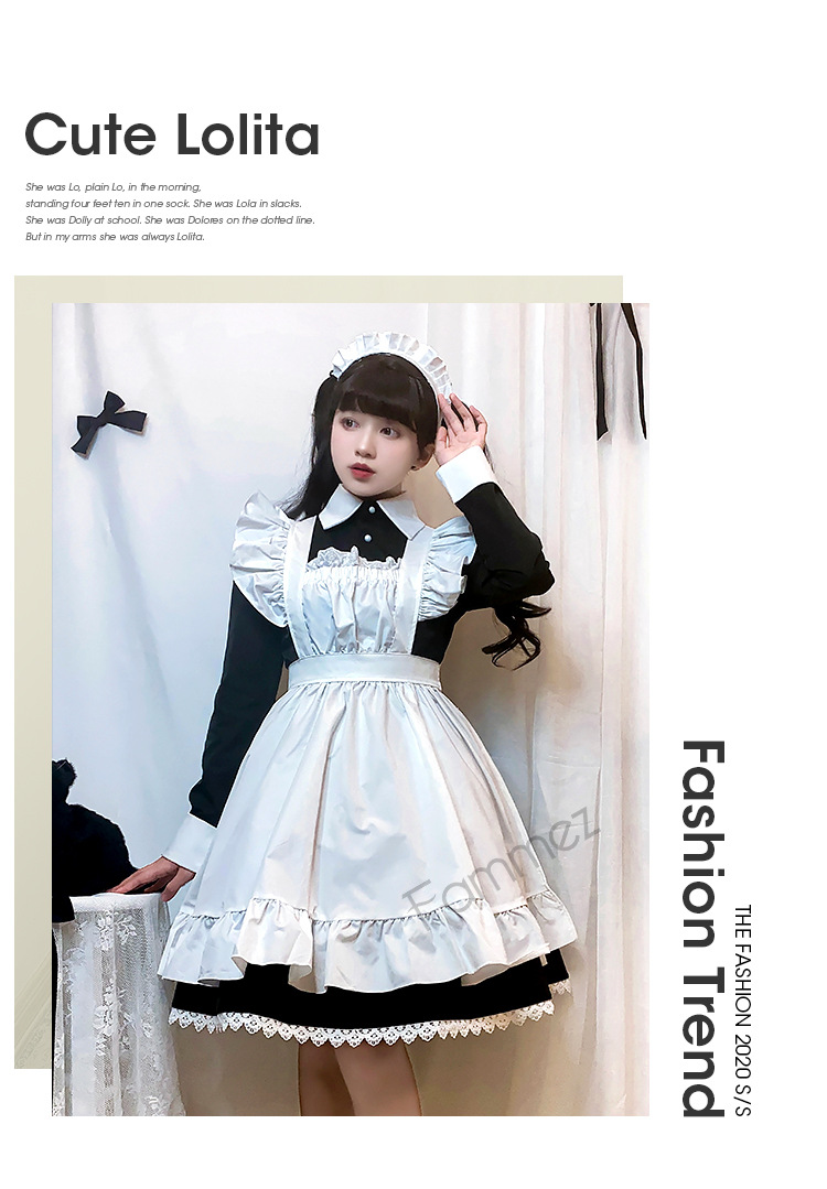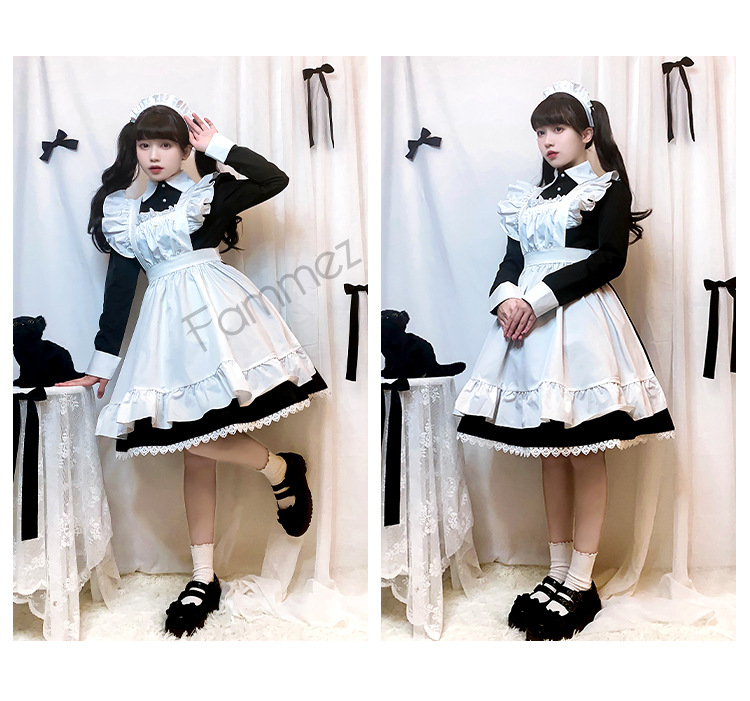 黒と白のコントラストが美しく、伝統的なメイド服の上品な魅力を現代的にアレンジした洗練されたスタイル