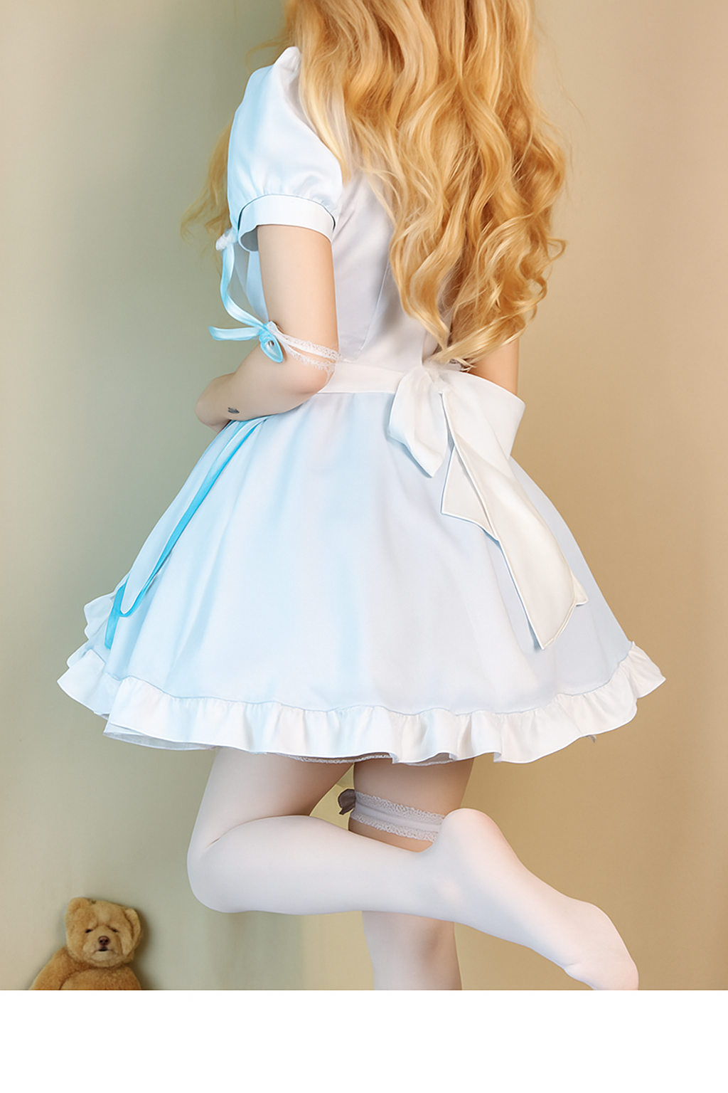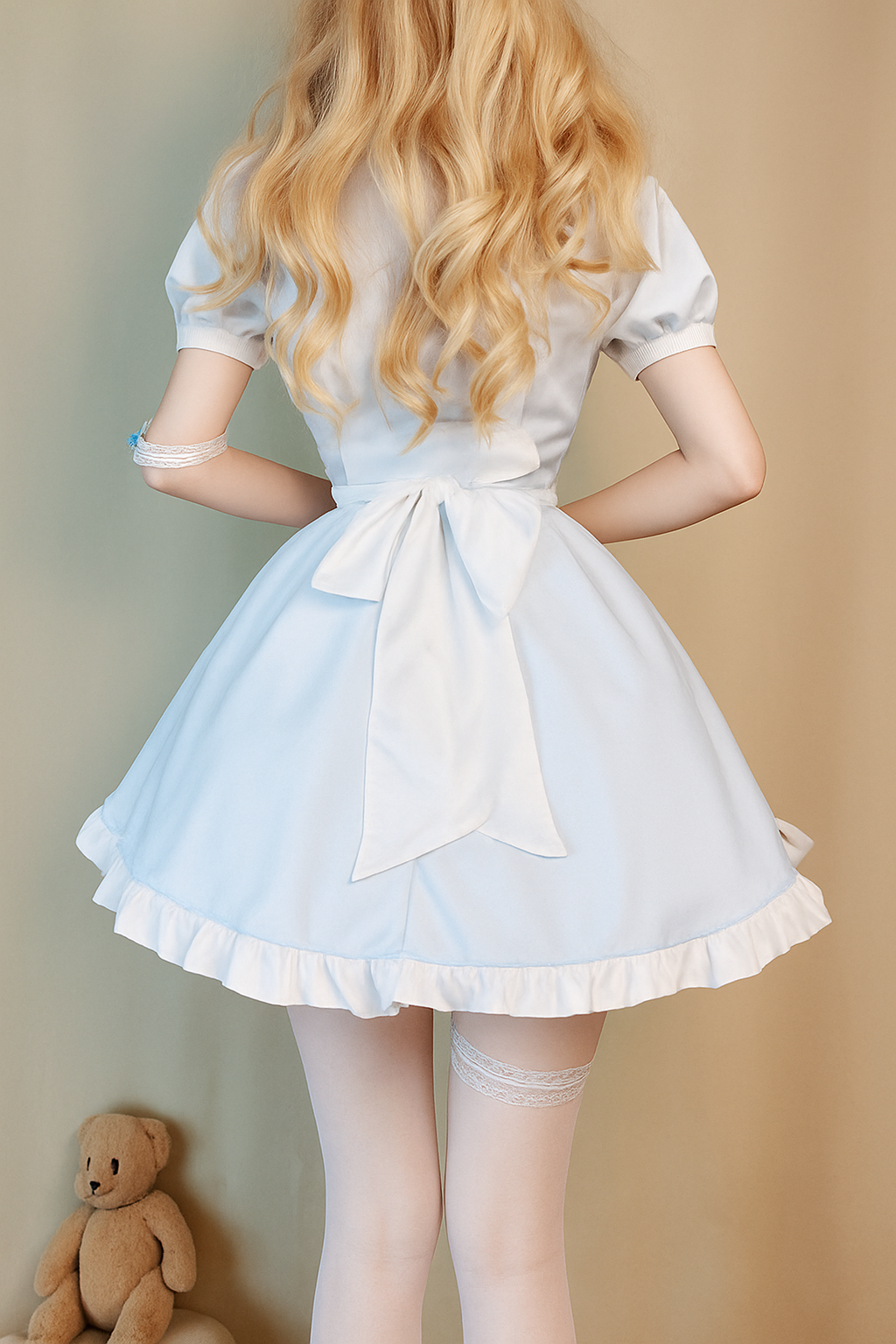 エプロンドレスとカチューシャがセットになっており、完璧なメイド服コーディネートが完成します。